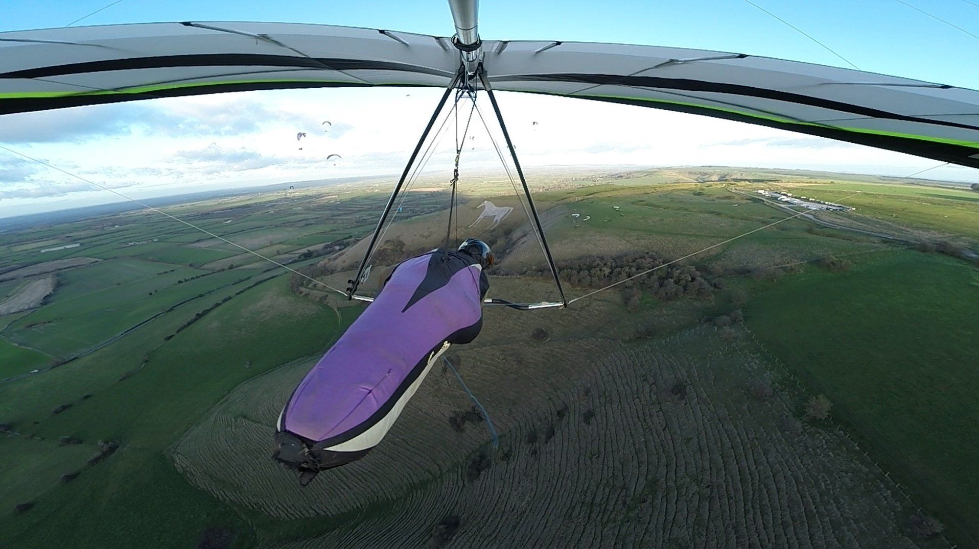 I flew the Alpha 235 clipping in at 86kg from the Malvern Hills (Pinnacle East launch) on an early spring day with 12-18mph winds on launch. Pinnacle suffers from compression on launch so the wind on the slope was probably more like 8-12 mph. I had deliberately waited for a paraglider type wind day as the Alpha 235 is billed as a paraglider with the frame of a hang glider. And I was worried about ground handling all that sail in any wind. I needn’t have worried and I would quite happily take the 235 out again in much stronger winds (other than for the rigging concerns already discussed above). I had been worried about holding the nose down on the steep launch which is a typical issue on even much less well-endowed single surface gliders. So you can imagine my surprise when my nose-wire man casually said “I’m not holding any pressure there” when I wasn't even aware the nose was ‘all mine’ yet! And I had also been concerned about wrestling to keep errant wings down but the Alpha responded beautifully to my subtle corrections in the punchy air coming up the slope.
