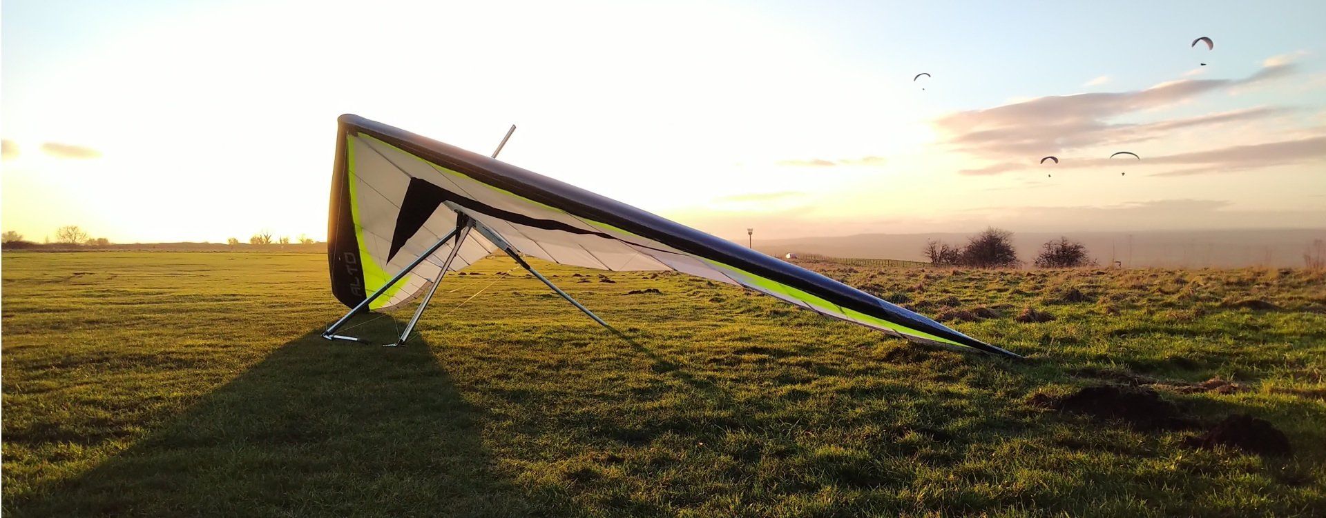 I finally got a chance to have a go on the current training glider offering from Wills Wing - the Alpha 235. This wing is meant to be a school wing for the initial training on shallow school slopes. But unlike the Condor it replaces, Wills Wing designed it to be certified for high flight as well. Reading reviews from various schools/instructors in the USA they are all saying the same thing. That is that this high flight ability of the Alpha 235 is not just a paperwork fudge. This glider, they tell you, is a delight in high flight. And wow, they are not wrong! The 235 is the latest in the Alpha line up following on from the 180 and 210. As with most gliders made in the land of inches, feet and pounds, that ‘235’ is its wing area in square feet. Yes, it is HUGE! Bear in mind that most tandem gliders are around the 220 square feet mark and the Alpha is a solo glider with a minimum certified clip in of a mere 68kg (150lbs) and you start to realise that Steven Pearson (chief designer at Wills Wing) must have found ways to bend the laws of physics with this machine! The new 235 has the same clip-in weight range as the 210 but has a lower minimum speed and better control in roll, especially around the stall speed. So the 235 has effectively replaced the 210. The 180 is then for those super-light people. Construction-wise it is nostalgically old-school with corded batten retention (not a flip-tip batten end in sight) and only a handful of battens to stuff each side. Although, those battens are crazily long what with the huge chord this machine has! The cross-bar is almost straight when the glider is tensioned making it look like the fixed cross tube gliders of yonder year (the cross tube is actually fully floating). It has luff lines (steel for length stability and durability) and the same bungee-retained washout rods that will be familiar to Falcon owners. Although it is a huge glider, it has a normal size solo control frame. There is no nose cone to fit. And no nasty flaps to try and close on the nose like some other gliders that tried to ‘simplify’ by not having a nose cone. The nose plates on the Alpha sit out proudly nacked. This also makes pre-flight inspection easier. Rigging is a minimal affair that when done you are left wondering what you have missed! The one big negative for me on the Alpha however is that it will not rig flat. Wills Wing understand the importance and demand in the market for flat rigging and all their glider bar the Alpha will rig flat. I guess the geometry of the Alpha just doesn't lend itself well to flat rigging (the side wires become tight before the pull-back with the A-frame folded underneath it) and when you consider the intended use - on a shallow training hill in light to no wind - the flat-rig-ability wasn’t as high a priority as the handling and slow flight behaviour (provided by the same geometry that foils the flat rigging). For flying on windy exposed hills this is a real issue made worse by having just so much sail for the wind to grab. It made me very nervous rigging it on the hill for sure and I ended up enlisting helpers to hold onto bits for fear of it prematurely going flying without me. I flew the Alpha 235 clipping in at 86kg from the Malvern Hills (Pinnacle East launch) on an early spring day with 12-18mph winds on launch. Pinnacle suffers from compression on launch so the wind on the slope was probably more like 8-12 mph. I had deliberately waited for a paraglider type wind day as the Alpha 235 is billed as a paraglider with the frame of a hang glider. And I was worried about ground handling all that sail in any wind. I needn’t have worried and I would quite happily take the 235 out again in much stronger winds (other than for the rigging concerns already discussed above). I had been worried about holding the nose down on the steep launch which is a typical issue on even much less well-endowed single surface gliders. So you can imagine my surprise when my nose-wire man casually said “I’m not holding any pressure there” when I wasn't even aware the nose was ‘all mine’ yet! And I had also been concerned about wrestling to keep errant wings down but the Alpha responded beautifully to my subtle corrections in the punchy air coming up the slope. Nothing else for it at this point I proceeded to launch and once again the glider behaved impeccably. The air I flew in was a mixture of dynamic ridge lift, weak but punchy small spring thermals at ridge height and then when higher, smooth wide thermals (that tended to peter out about 1000ft above launch as I had left it a bit late in the day to fly having been tied up most of the day). In flight the Alpha was just as I had found it on the ground. Super responsive and light to manoeuvre in a way that just begged you to play with every little eddy and current in the air-mass, whilst somehow not being twitchy or at all prone to over-control. Just pure, easy fun. The hang point on the Alpha is on the keel not the kingpost and added to the huge chord, this glider should be heavy in pitch. But it isn't! It has plenty of linear feedback in pitch on the bar (linear meaning that the pressures increase the further you displace the bar which is vital for a student) but it was not at all taxing to move the bar in pitch. So just like in roll, the glider asks to be played with in pitch as you try to exploit every last little bit of movement in the air. Which brings me onto my next point. No matter how much I provoked the glider, pushing out in turns and whipping it round in lift, it just took it on the chin and kept on flying. Right down to what felt like zero airspeed it just kept on going and responding to my every control input. There is a slight negative to this behaviour that a beginner ought to watch which is that it could lead to a false sense of security that could then catch one out when migrating on to a more ‘normal’ glider. But the flip side of that is that this is such a safe platf